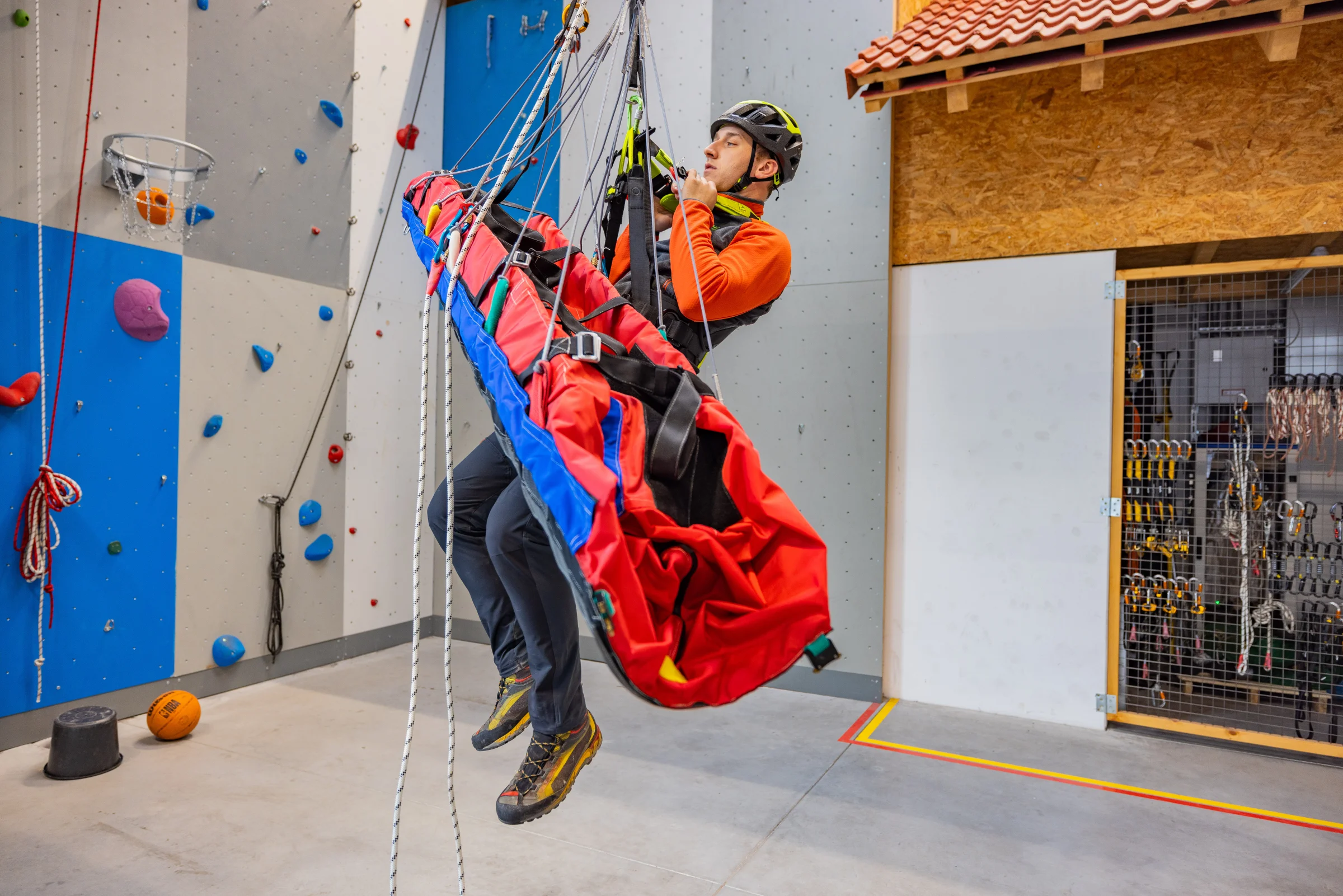 Neues Rettungssystem für den horizontalen und vertikalen Verletztentransport aus exponierten Lagen für Seil– und Luftrettung.