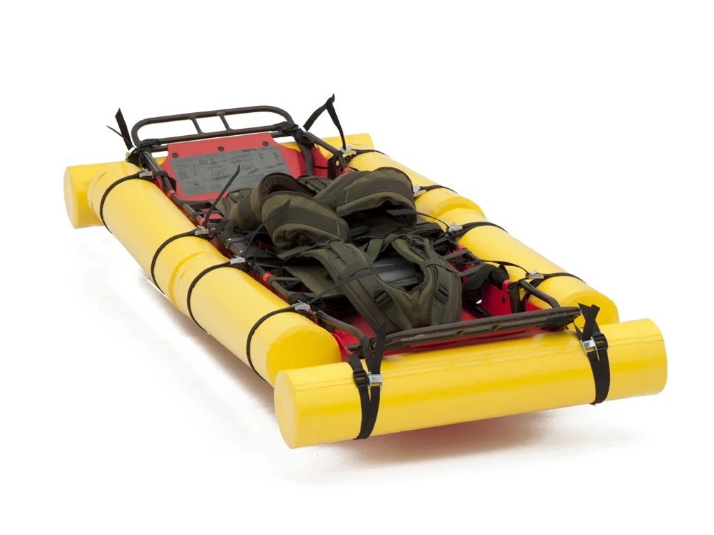 Schwimmkörper werden mittels Gurten im Kopf/Fußbereich und seitlich am Rahmen der UT 2000 befestigt.