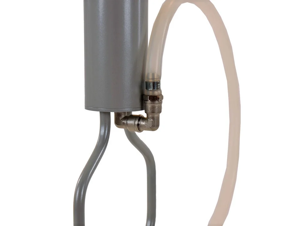 Abgewinkelte Schlauchführung für optimalen Schutz des Schlauchs vor Beschädigungen durch Ski- oder Bergschuhe.